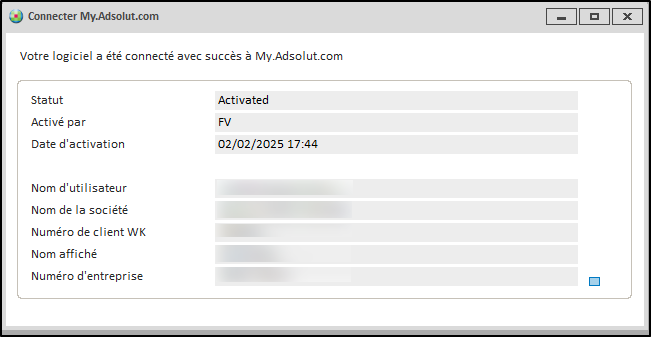 Après avoir réussi à vous connecter à My.Adsolut.com, une confirmation s'affichera.