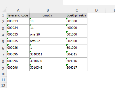 - leveranc_code = Leverancierscode