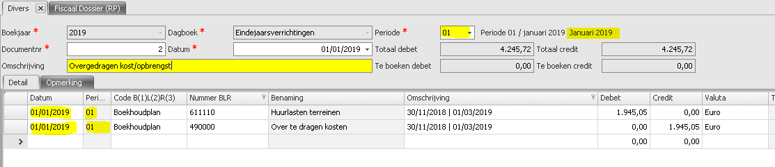 - datum boeking : de eerste dag van het boekjaar wordt gebruikt