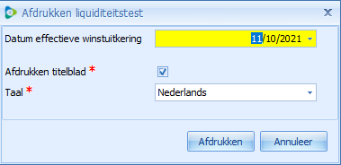 - In het Fiscaal Dossier, klik in de menugroepering Afdrukken op Liquiditeitstest.