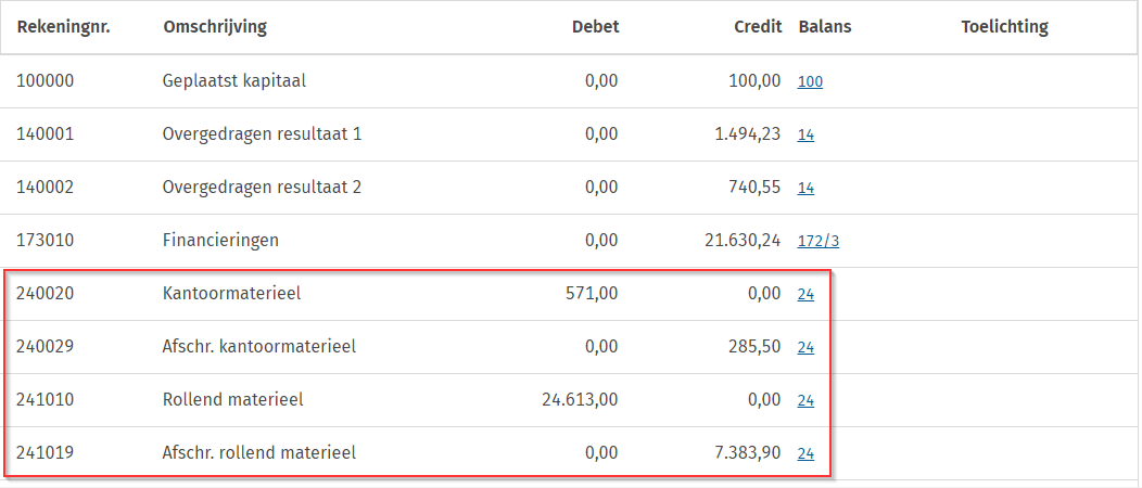 Na het importeren verschijnt de proef -en saldibalans op het scherm: