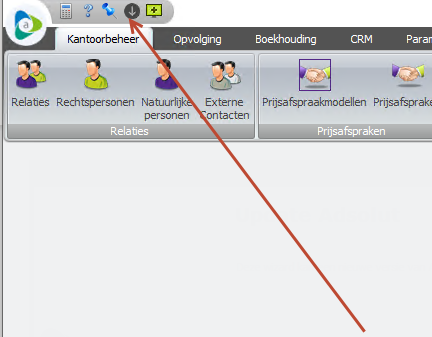 | Adsolut is niet meer up-to-date. Er is reeds een nieuwe versie gedownload. Deze versie moet je nog installeren. Klik op het icoontje. Je krijgt de keuze om de versie te installeren die reeds gedownload is, of een nieuwere versie te downloaden als deze reeds beschikbaar is. Tijdens het proces heb je ook de mogelijkheid om de release notes te bekijken. |