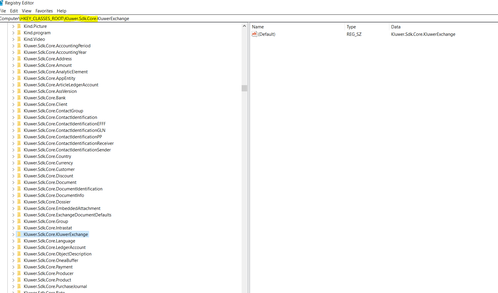 - Niet toegevoegd: In dit geval werd het gedownloade setupbestand voor 'Kluwer Exchange UBL' geïnstalleerd via een tool (bv. SecureLink op Citrix) die enkel bestanden kopieert, en geen registry keys toevoegt. In dit geval is het belangrijk dat die specifieke setupfile manueel wordt geïnstalleerd zonder invloed van deze (externe) tool(s). Een alternatief bestaat erin dat de betrokken registry keys manueel worden toegevoegd aan het register van de betrokken machine. Wij kunnen deze op aanvraag bezorgen, maar voegen deze zelf niet toe.