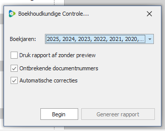 - Selecteer het boekjaar waarvoor je de controles wenst uit te voeren.