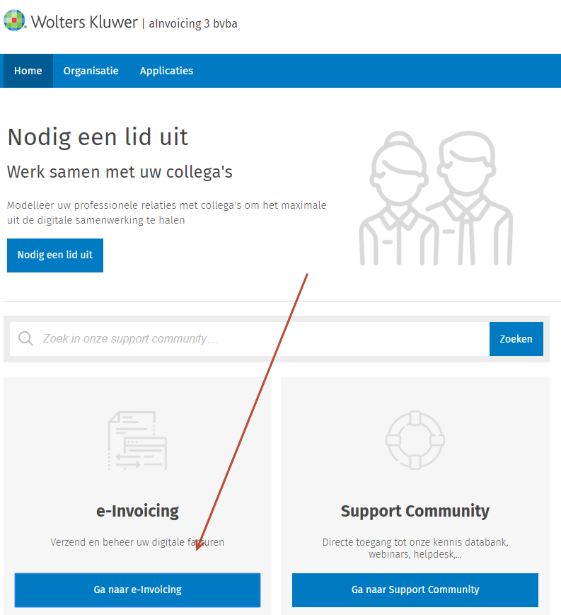 - Op de Wolters Kluwer TAA Software accountpagina klikt u op Ga naar e-invoicing.