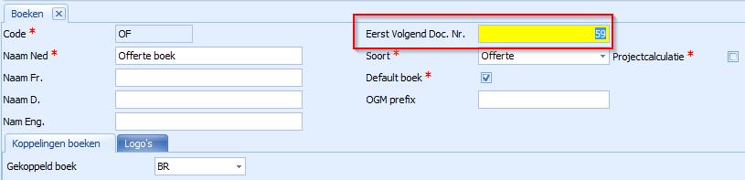 3. In het veld Eerst Volgend Doc. Nr. geeft u het nummer voor de eerstvolgende bon in.