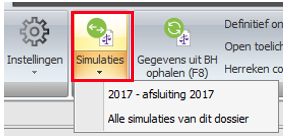 Indien gekozen wordt voor “Alle simulaties van dit dossier” wordt een lijst getoond van alle bestaande simulaties van het geopende dossier.