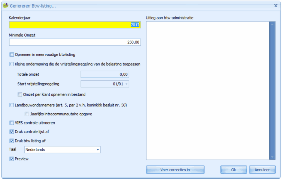 U kunt er eveneens voor kiezen om het bestand op te nemen in de meervoudige btw-listing door het betreffende vakje aan te vinken.