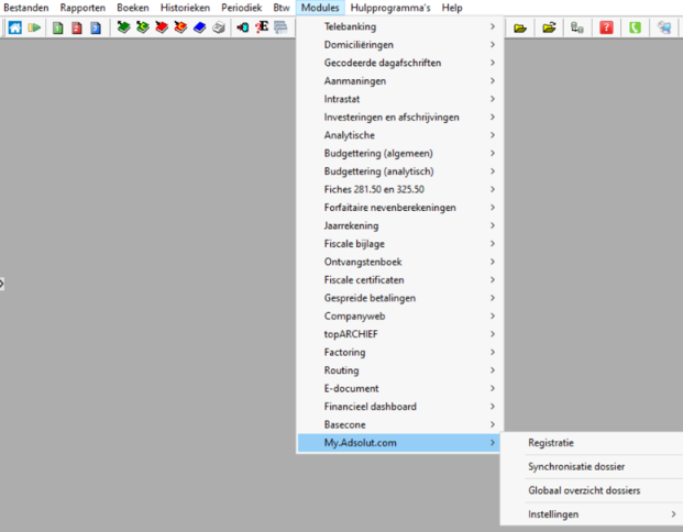 Vergeet niet om de gewenste dossiers nog te synchroniseren met My.Adsolut.com om hun data beschikbaar te maken in de cloud.
