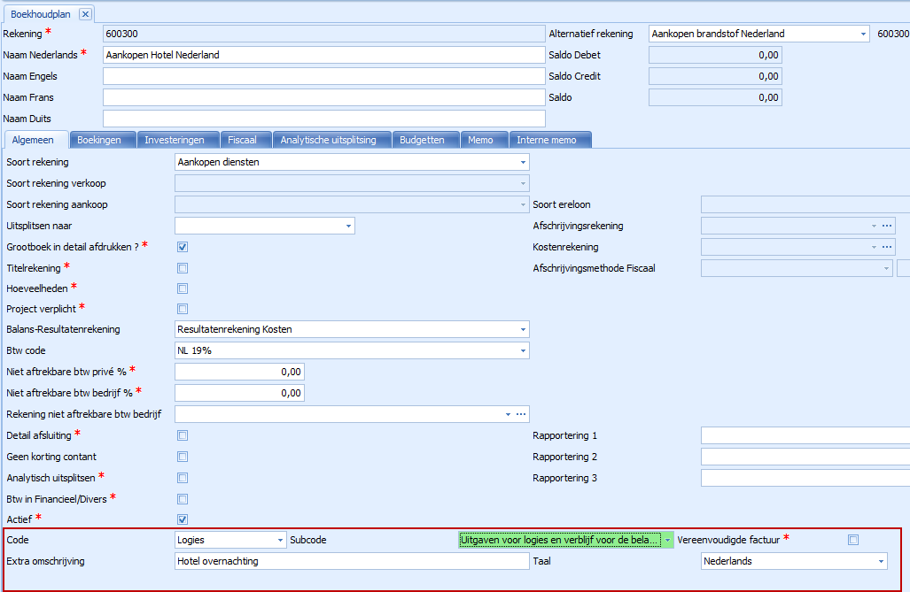 Vaak wordt in het boekhoudplan onderscheidt gemaakt tussen binnenlandse kosten en buitenlandse kosten.
