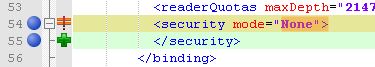Hier staan ze op regel 54 & 55, maar dit kan verschillend zijn per config. <security mode="None">