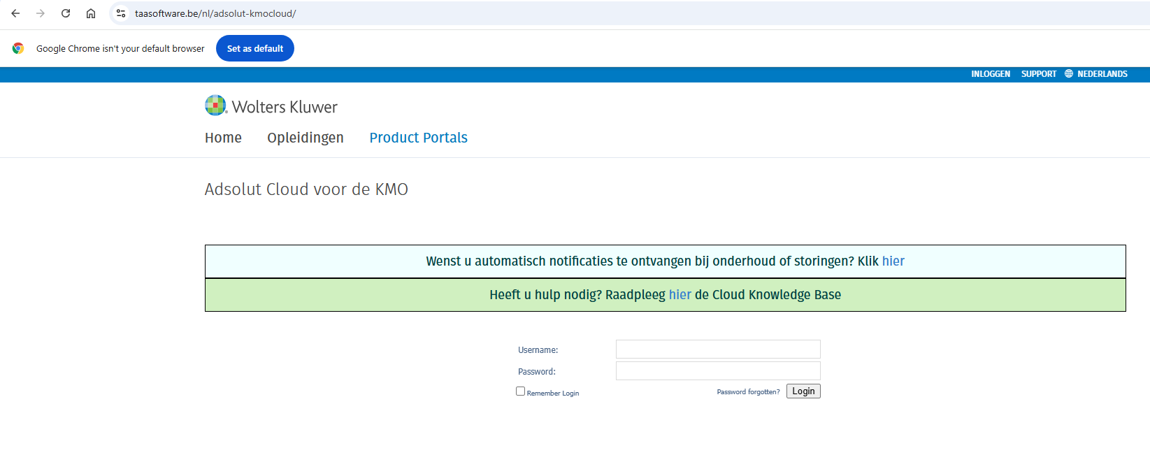 Als ik met Adsolut cloud werk, logt u in via onderstaande website: https://taasoftware.be/nl/adsolut-kmocloudEn kan u onderstaande website zien: