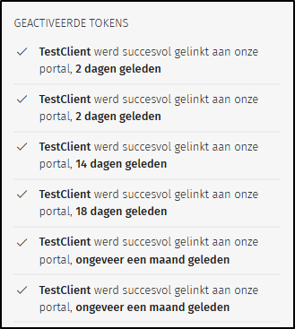 Dit is een handige verificatie dat de koppeling met de beveiligingssleutel (token) succesvol is afgerond. Informatief wordt er meteen ook een historiek getoond van voorbije koppelingen.