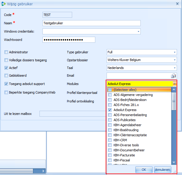 Zie ook Thema: Gebruikersbeheer en licentiebeheer in Adsolut