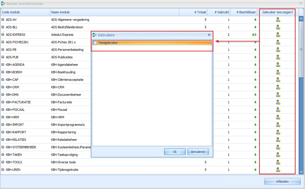 MasterKB > Systeembeheer > Gebruikersbeheer > Beheer licentiemodules