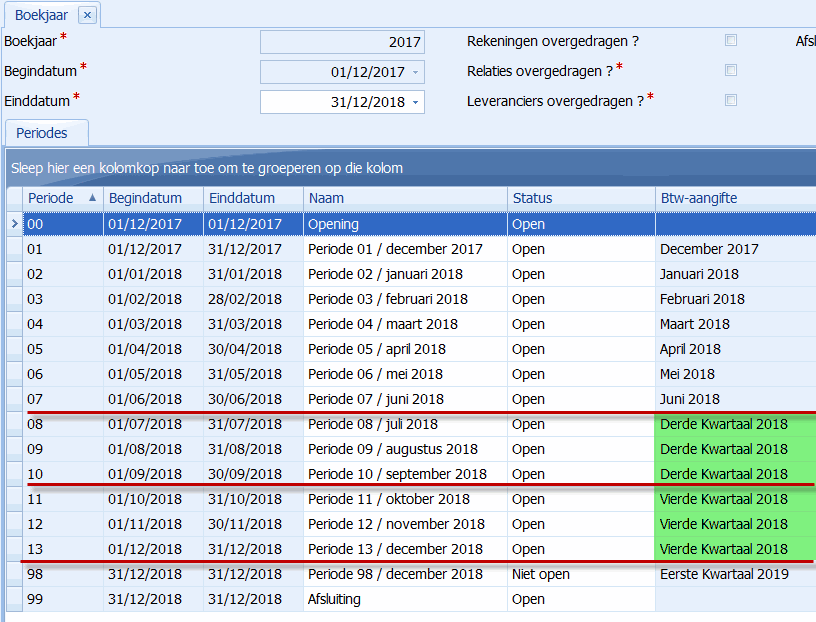 Zodra u heeft geboekt, kan de periode niet meer worden gewijzigd enkel nog de BTW-aangifte periode.