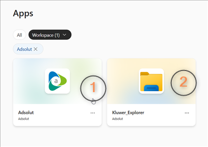 - Via de windows app start u Adsolut (1). Vervolgens opent u de Kluwer Explorer (2).