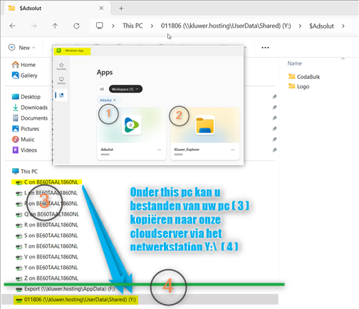 - Kopieer de bestanden (zoals Excel-bladen, Word-documenten, pdf-bestanden) van uw pc naar onze server via de Kluwer Explorer.