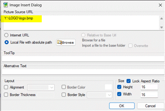 Y:\LOGO op onze server. - Pas de "picture source URL" aan naar