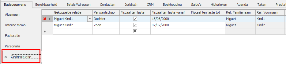 - Open het detailscherm (via F2) van de relatie en controleer de gegevens die betrekking hebben op Personenbelasting.