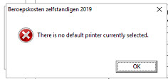 Ik werk met Beroepskosten zelfstandigen via Tax Advisor Online. Wanneer ik in een simulatie met een manuele ingave een invullijst wil afdrukken of een afdrukvoorbeeld opvraag, dan verschijnt de melding: "there is no default printer currently selected".