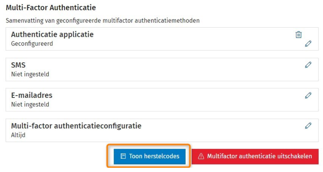 Bewaar je herstelcodes meteen wanneer je MFA instelt. Zo heb je altijd een back-up bij loginproblemen.