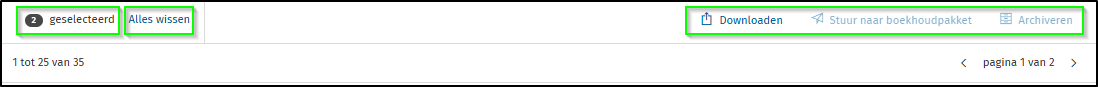 Enkel de verkoopdocumenten met de status Verzonden kunnen worden gearchiveerd. Alle aankoopdocumenten kunnen worden gearchiveerd. Na archivering zijn de documenten terug te vinden onder de tab Archief. Het is mogelijk om de archivering ongedaan te maken en de documenten terug te verplaatsen naar Aankoop of Verkoop.