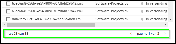 - De documenten worden steeds getoond in een gepagineerde tabel. Elke pagina toont 25 lijnen.