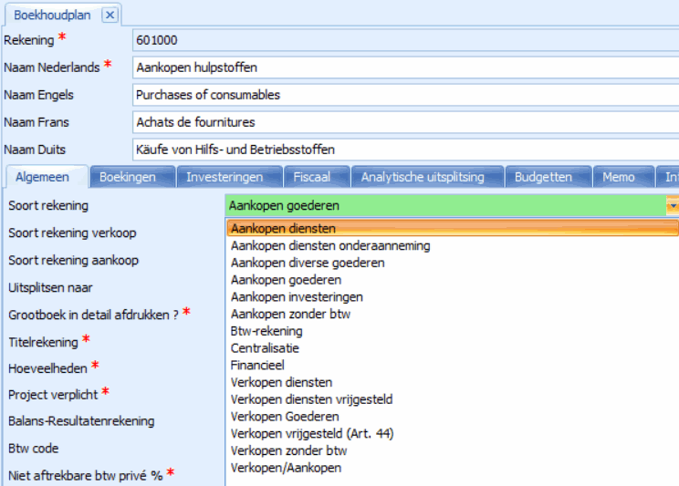 Dit is belangrijk, omdat er gekeken wordt naar de soort rekening die gekoppeld is aan de grootboekrekening om te weten op welk btw-vak een boeking geplaatst moet worden.